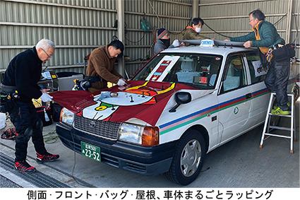 今回は、2月にお仕事させていただいた、タクシーラッピングを紹介いたします。