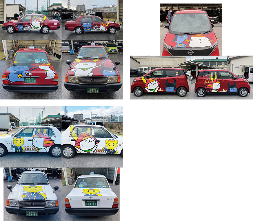 そして、「ひこにゃん」と近江鉄道のマスコットキャラクター「駅長がちゃこん」とのコラボタクシーです。